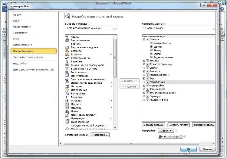 - 03В столбце «Настроить ленту» установите флажок «Разработчик». Нажмите кнопку ОК, чтобы сохранить изменения.